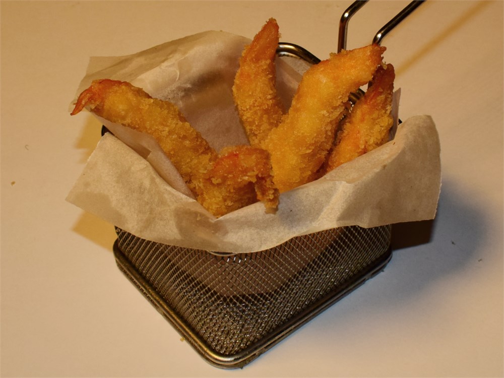 Тигровые креветки, обжаренные во фритюре в легком и хрустящем кляре