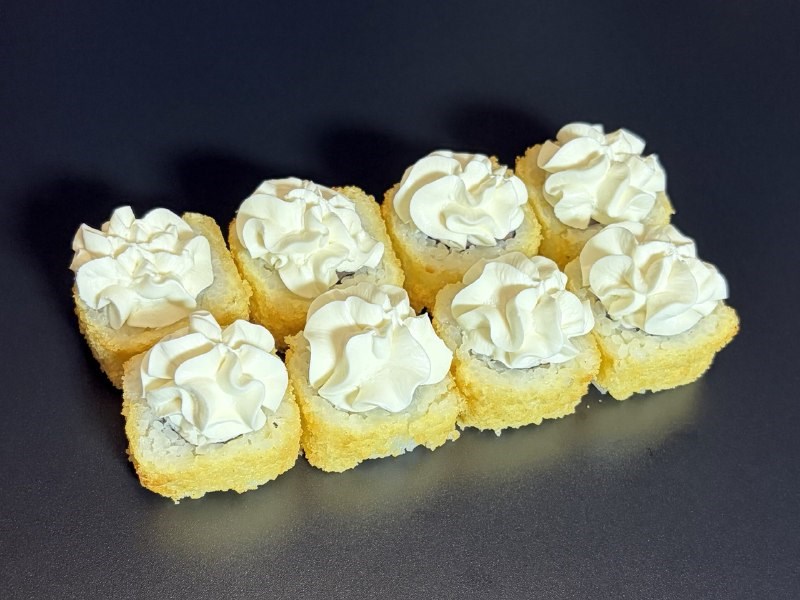 Лосось, снежный краб, творожный сыр, нори, рис, панировка