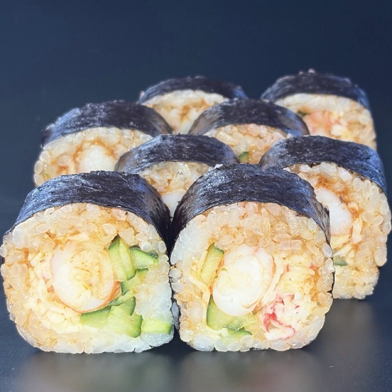 Креветка, снежный краб, огурец, соус Том Ям, рис, нори
