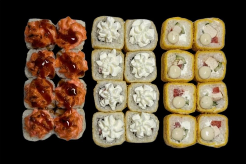 Филадельфия Роял, запеченный ролл эби чиз, ролл цыпленок тортилья (24 шт)